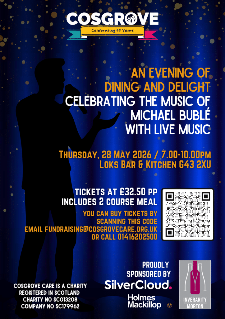 Priced at £32.50, tickets can be purchased online by visiting the event page or by emailing fundraising@cosgrovecare.org.uk / calling 0141 620 2500 – option 4.
